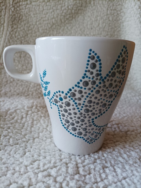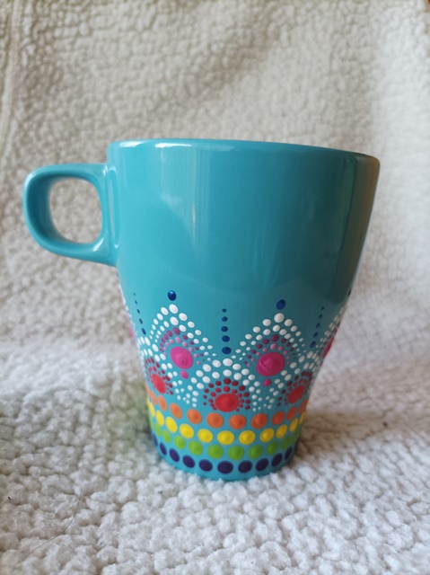 1.Világoskék, mandalás bögre, 2,5