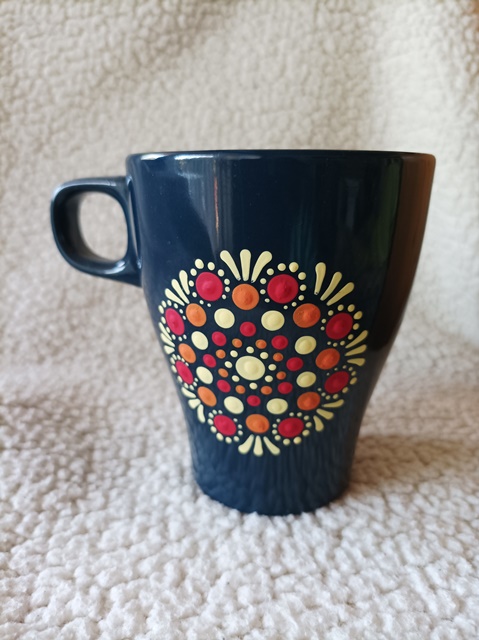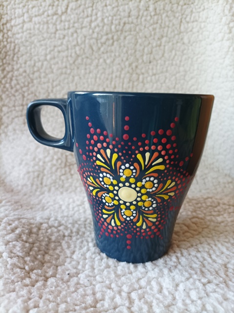 Sötétkék, mandalás bögre, 2,5 dl