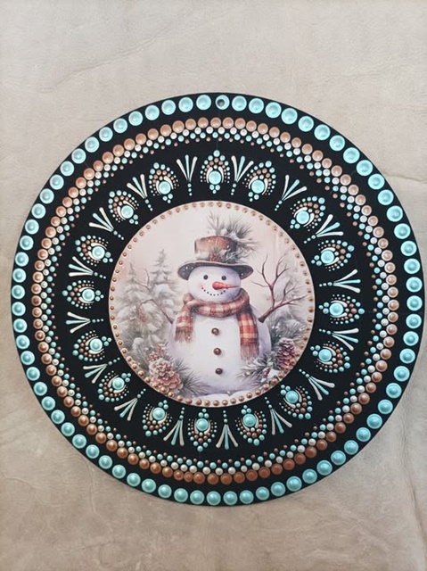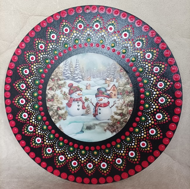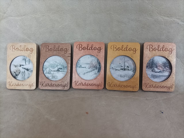 falra akasztható téli dísz, fa alapon, 24 cm-es